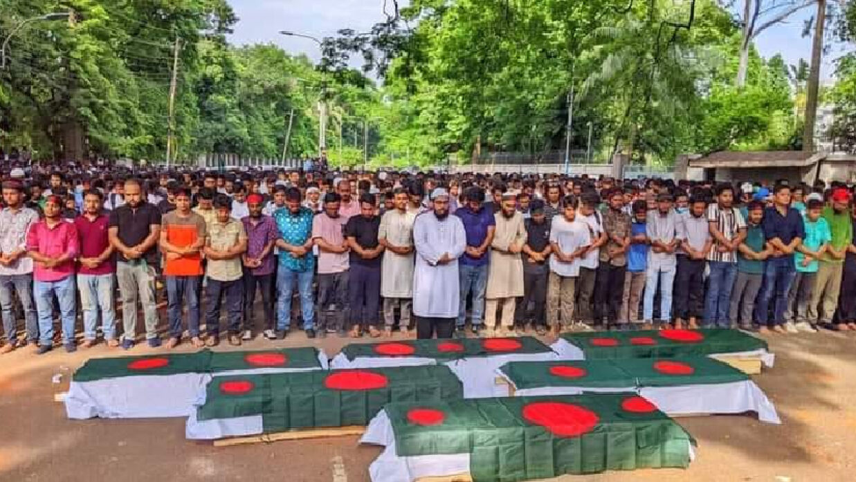 নিহত ছয় জনের গায়েবানা জানাযা ঢাবিতে, কফিন ছুঁয়ে আন্দোলনের শপথ