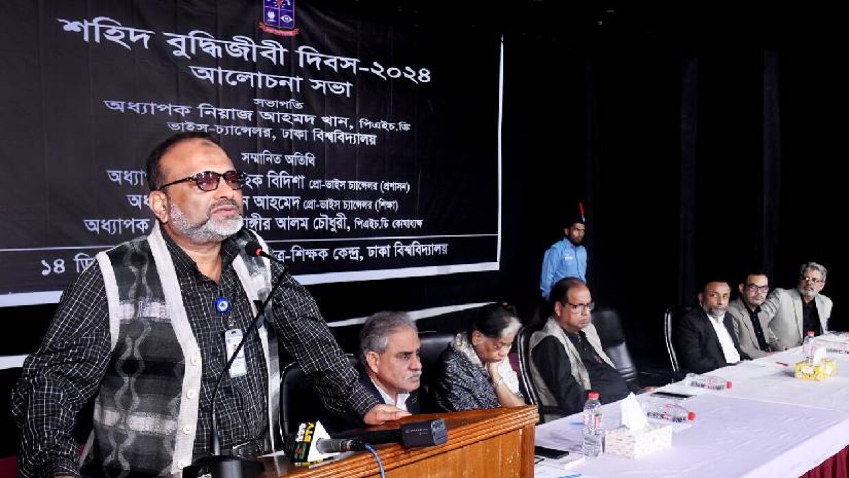 আজ শনিবার (১৪ ডিসেম্বর) ঢাকা বিশ্ববিদ্যালয়ের ছাত্র-শিক্ষক কেন্দ্র মিলনায়তনে শহীদ বুদ্ধিজীবী দিবস উপলক্ষ্যে এসব কথা বলেন তিনি।