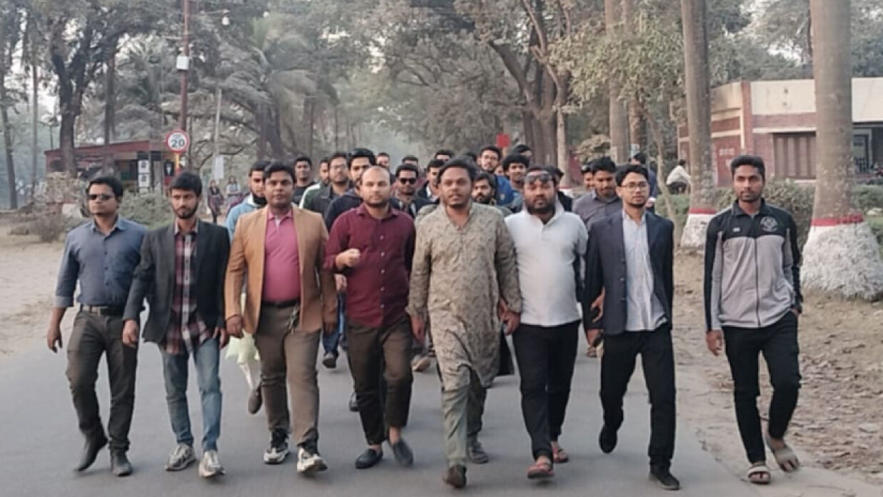 শনিবার (৮ ফেব্রুয়ারি) বিকাল সাড়ে পাঁচটায় বিশ্ববিদ্যালয়ের পরিবহন চত্বর থেকে একটি শুভেচ্ছা মিছিল বের করেন তারা। মিছিলটি বিশ্ববিদ্যালয়ের প্রধান ফটকের সামনে সংক্ষিপ্ত সমাবেশের মাধ্যমে শেষ হয়।