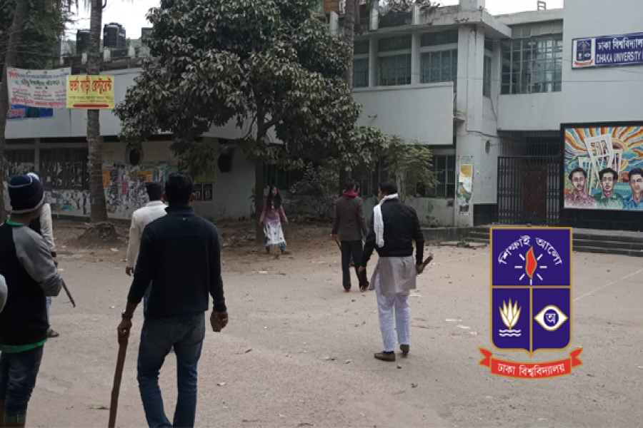 মুক্তিযুদ্ধ মঞ্চের একাংশের সভাপতি আমিনুল ইসলাম বুলবুলের নেতৃত্বে অর্ধশতাধিক নেতাকর্মী এ হামলায় অংশ নেন বলে জানা গেছে,। এসময় ডাকসুর সদস্য ও ছাত্রলীগ নেতা রাকিবুল ইসলাম ঐতিহ্য তাদেরকে বাঁধা দিতে গেলে তাকেও শিবির আখ্যা দিয়ে লাঞ্ছিত করেন মঞ্চের নেতাকর্মীরা।