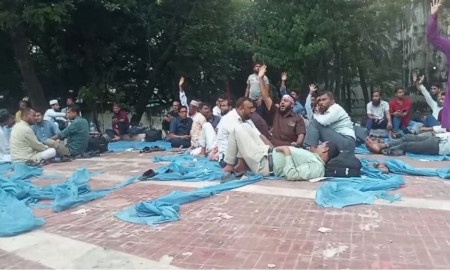 রাতেও কেন্দ্রীয় শহীদ মিনারে অবস্থান শিক্ষকদের © সংগৃহীত