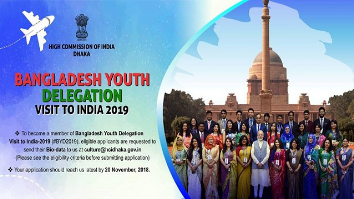 ‘বাংলাদেশ যুব প্রতিনিধি দলের ভারত ভ্রমণ-২০১৯’ এ অংশগ্রহণের জন্য আবেদনপত্র পাঠানোর সময় শেষ হচ্ছে আগামী ২০ নভেম্বর।  আবেদনপত্র জমা দেয়ার ঠিকানা culture@hcidhaka.gov.in।