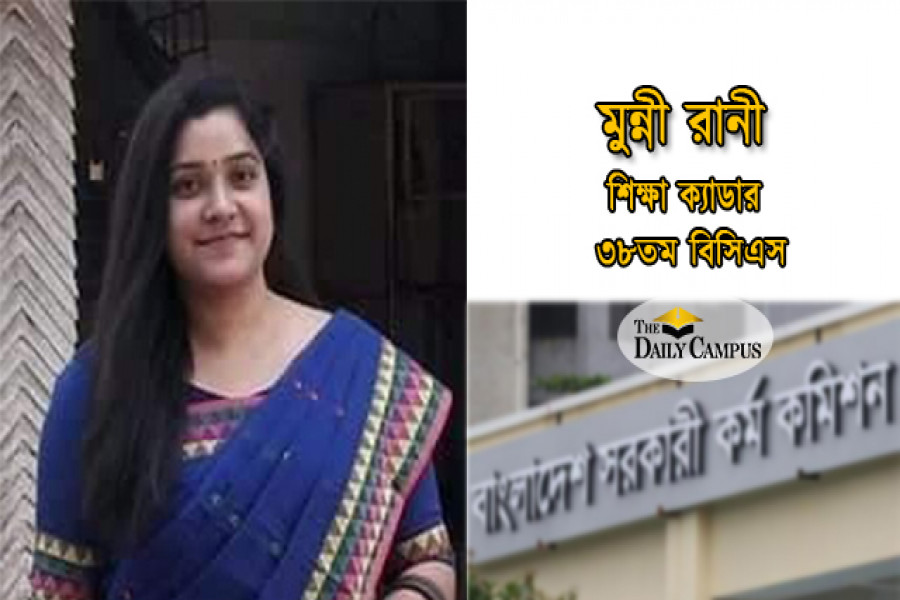 ৩৮তম বিসিএসের ফলাফল প্রকাশিত হবার পর মুন্নী রানীর সঙ্গে নানান বিষয় নিয়ে দ্যা ডেইলি ক্যাম্পাসের কথা হয়েছে। এসময় তিনি তার সাফল্যের নানা বিষয়ে জানিয়েছেন।