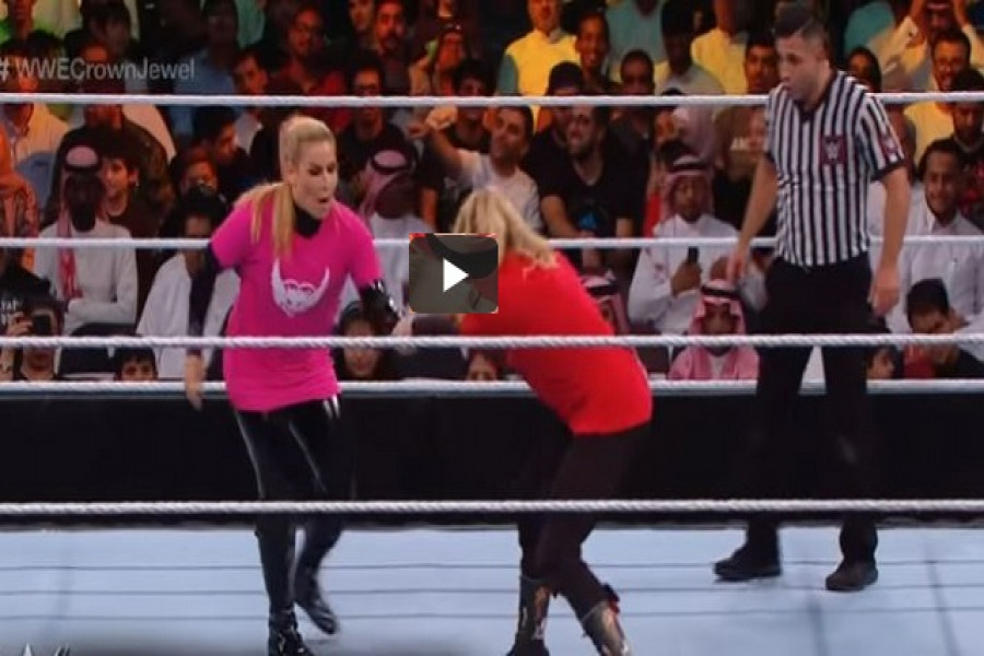 বিনোদনের জগতে কঠোর নিয়মকানুন শিথিলের পদক্ষেপ নিয়েছে সৌদি আরব। সেই ধারাবাহিকতাতেই নারীদের কুস্তি। দুই নারী কুস্তিগির নাটালিয়া ও লেসি ইভানসের মধ্যে এই প্রতিযোগিতা হয়। তবে তারা যথাসম্ভব শালীন পোশাক পরিধান করেন। গত বৃহস্পতিবার রিয়াদের কিং ফাহাদ ইন্টারন্যাশনাল স্টেডিয়ামে ডব্লিউডব্লিউই ক্রাউন জুয়েল ইভেন্টের অংশ হিসেবে কুস্তির আয়োজন করা হয়।