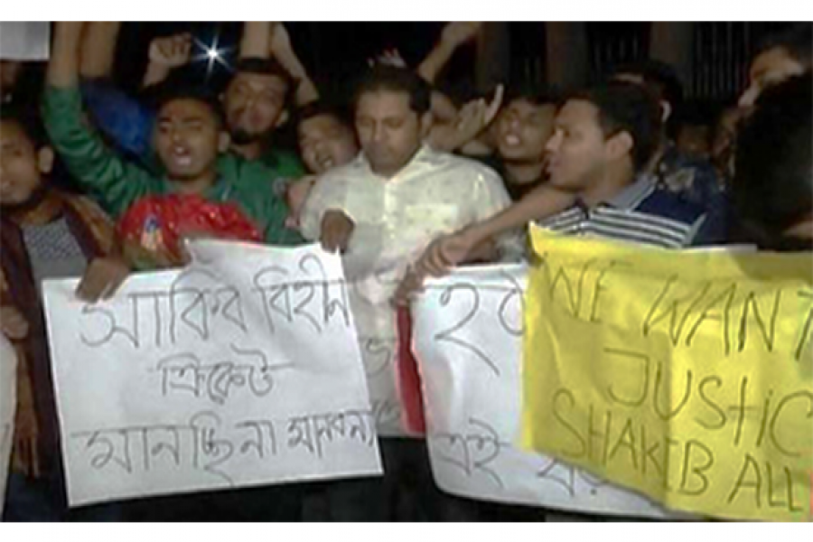 বিসিবির সামনে সাকিবভক্তদের বিক্ষোভ