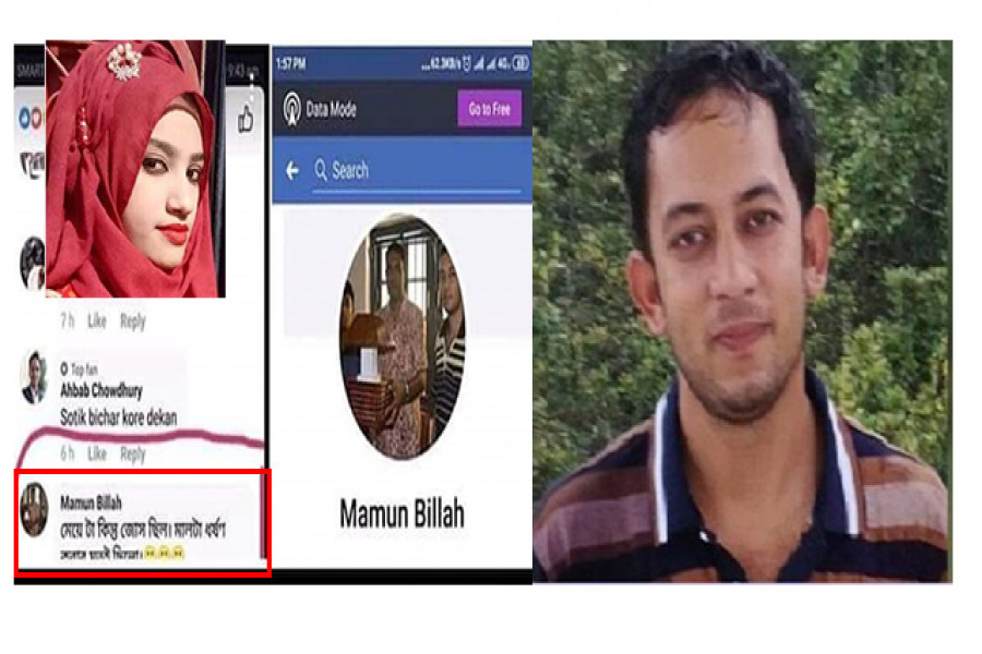 জানা গেছে, একটি অনলাইন নিউজ পোর্টাল নিহত নুসরাতের বিষয়ে একটি সংবাদ প্রকাশ করে তা ফেসবুক পেজে শেয়ার করে। সেখানে মামুন বিল্লাহ ফেসবুক আইডি থেকে মন্তব্য করা হয়, ‘মেয়েটা কিন্তু জোস ছিল, মালটা ধর্ষণ করার মতোই ছিল।’এমন আপত্তিকর মন্তব্যের পর অনেকেই তাকে ‘ভবিষ্যৎ ধর্ষক’ হিসেবে চিহ্নিত করে তার শাস্তির দাবি করে ফেসবুকে পোস্ট দিচ্ছেন।