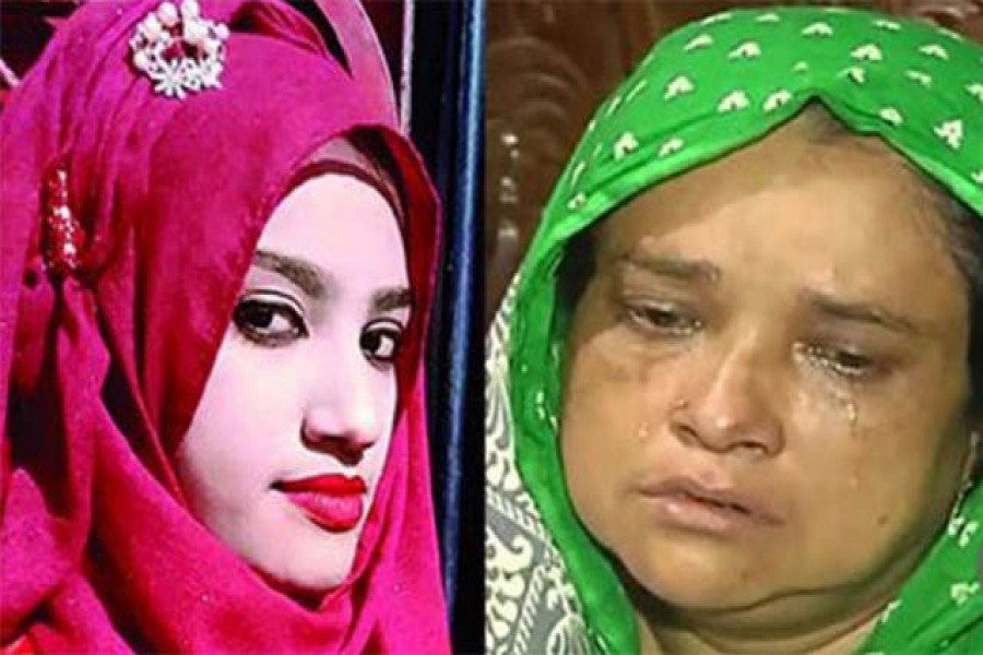 ফেনীর সোনাগাজী উপজেলার মাদ্রাসা ছাত্রী নুসরাত জাহান রাফিকে গত এপ্রিলে আগুনে পুড়িয়ে হত্যা করেছে দুর্বৃত্তরা। সে সময় আলিম পরীক্ষা চলছিল তার। পরীক্ষা কেন্দ্রেরই ছাদেই পুড়িয়ে হত্যা করা হয় তাকে। ওই আসামীদের সবার বিচার চলছে এখন।